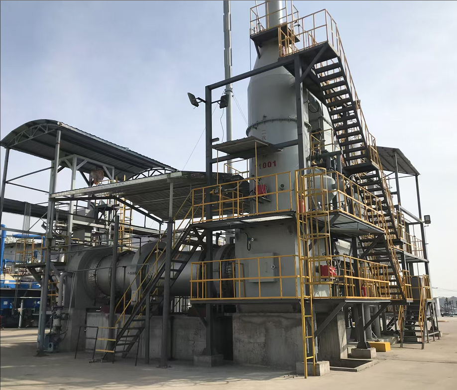 (2) 半干式急冷吸收塔的目的是降温和吸收酸性成份的作用,通常情况下,二噁英会在250~500℃再次生成,为了有效控制,将烟气的温度进行急剧降温。降温方式采用的喷碱液直接冷却,这样不仅可以带着大量的热量,还能将温度迅速降到200℃左右,实现了对二噁英进行良好的控制,对HCL物质的处理率高达70%以上。